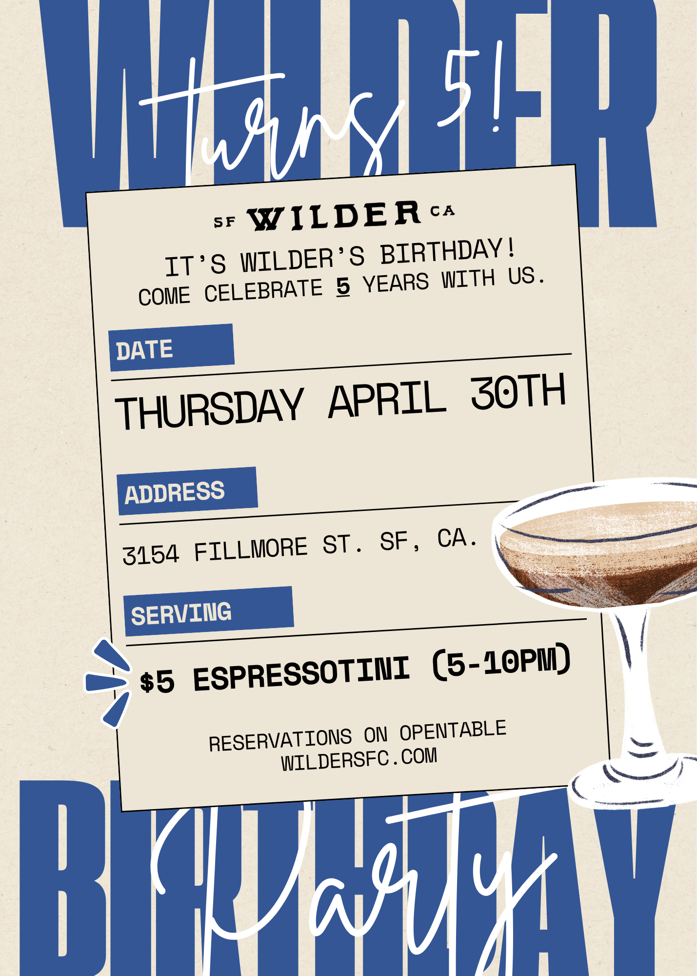 Since 2020, Wilder has been serving delicious cocktails and inspired international comfort food to our neighborhood as we recovered from a pandemic.